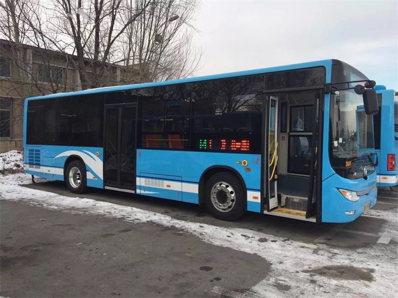 第三批29輛新能源公交車投入1路14路運營。與7路新車相同,這29輛新車也為藍色外觀氣電混合新能源公交。