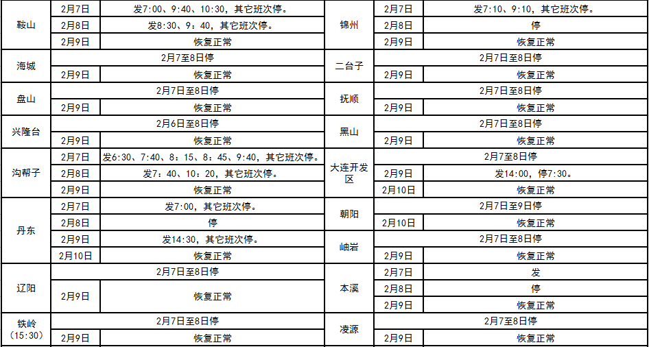 2016年春節(jié)假期班次發(fā)車時間